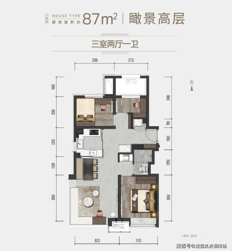 建面约87㎡三室两厅一卫实楼样板间,同样给我留下了深刻印象。