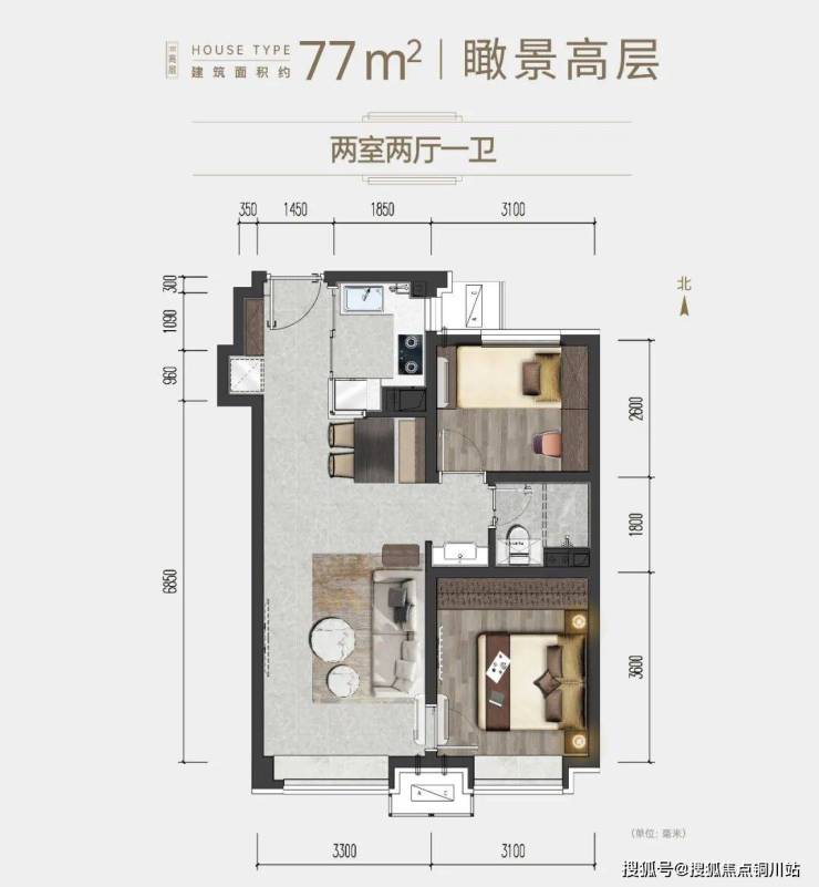 建面约77㎡的精装样板间,让我尤为喜欢,真正做到了低总价也有高品质。