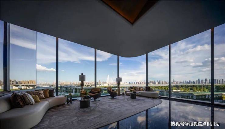 项目采用全景玻璃无视觉边框,这是华中长江畔首个无背立面360°环幕江景,免检弧形转角采用双超白玻璃,反射率低至18%,能够消除视觉畸变,实现连续全景宽屏观江效果。