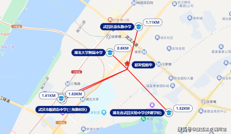 ● 教育方面,2公里范围内有徐东路小学及湖北大学附属中学、武昌实验中学(沙湖学校)、粮道街中学、三角路中学等。