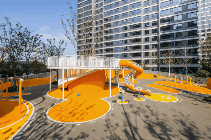 泳池外围,规划温馨友好的儿童游乐区以及会客廊架,在晴朗的午后,捧一杯咖啡,于家人闲坐于此,远离尘嚣的国际度假生活由此开启。