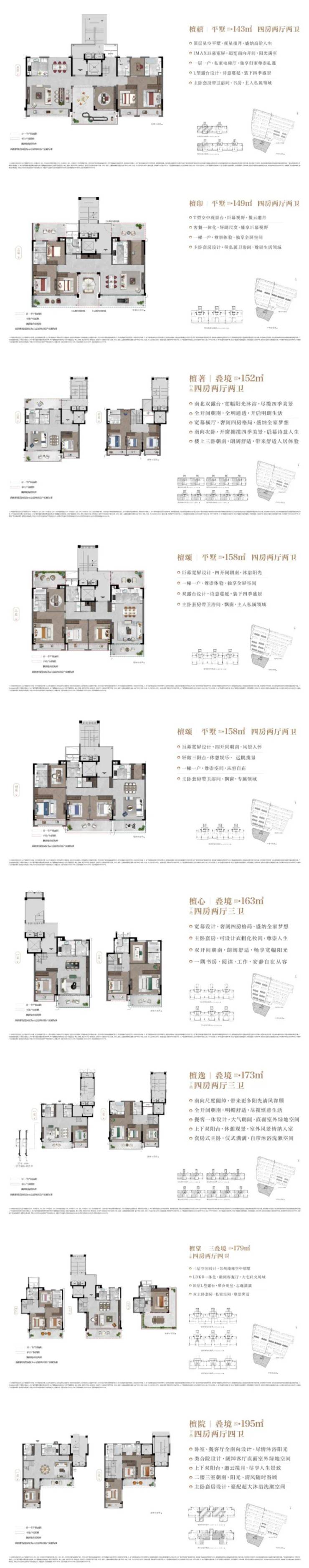 二是项目产品为4-6F的143-195㎡叠墅,分为上叠、平墅、下叠,真正实现“下叠大花园、层层有露台”。