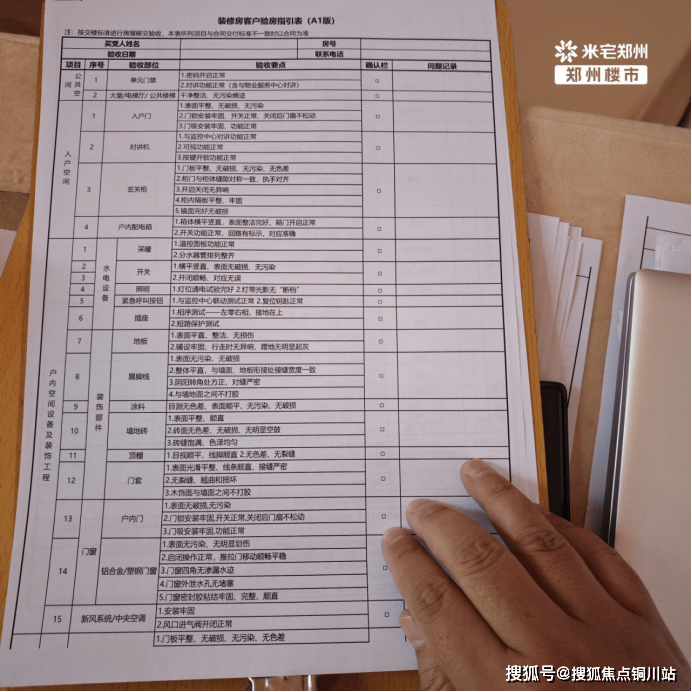 这是万科的精装验房指引表。