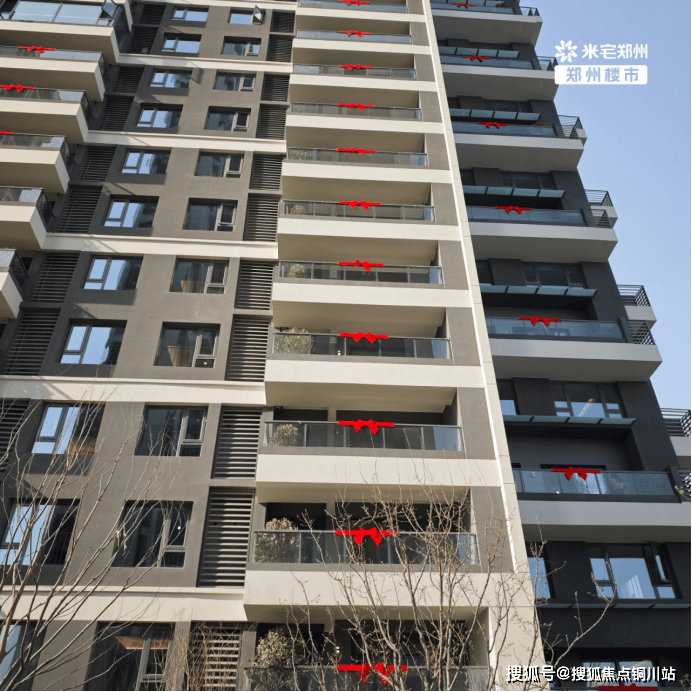 外立面是黑白灰的钢琴键设计,简约现代,从外面看每家每户都有一颗树。