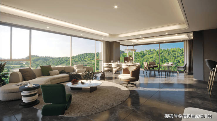 约42.35米的采光周长:此户型做到了真正的三面采光,且采用了大量全景落地窗设计,包含南向约15.5米的全屏开间、西侧约14.5米的广角式采光面及北侧约12.35米的景观视野,最终可实现约42.35米的采光周长。