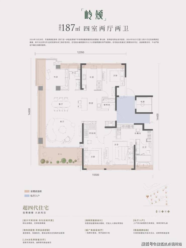 比如,建面约150㎡的户型实得面积可达约160㎡,堪比传统三代住宅一套建面约200㎡以上的户型,或者其他四代项目建面约177㎡以上的产品;