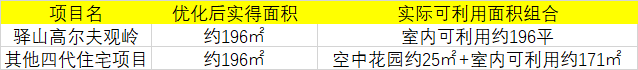 例如,实得面积同为约196㎡,其他楼盘则是由约25㎡无法封闭的空中花园+约171㎡室内空间组成;