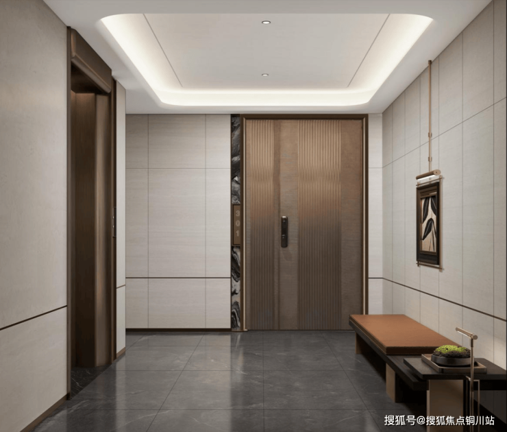 私厅入户:电梯前室可作为归家过渡区,与室内储物间配合达成内外双玄关,还能实现三进式入户体验。兼具私密性、实用性和仪式感。