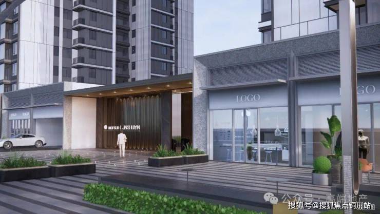4、唯此铝板幕墙 高光奢石立面——公建化外立面, 钻感LOW-E玻璃幕墙+经典金属铝板+“全面屏”窗墙比+蓝眼睛花岗岩设计