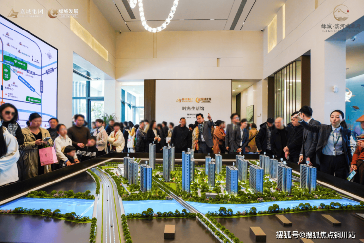 只见购房者络绎不绝,售楼处门口停满私家车辆,展示墙、沙盘前、洽谈区……各个角落都光影交错、人头攒动。