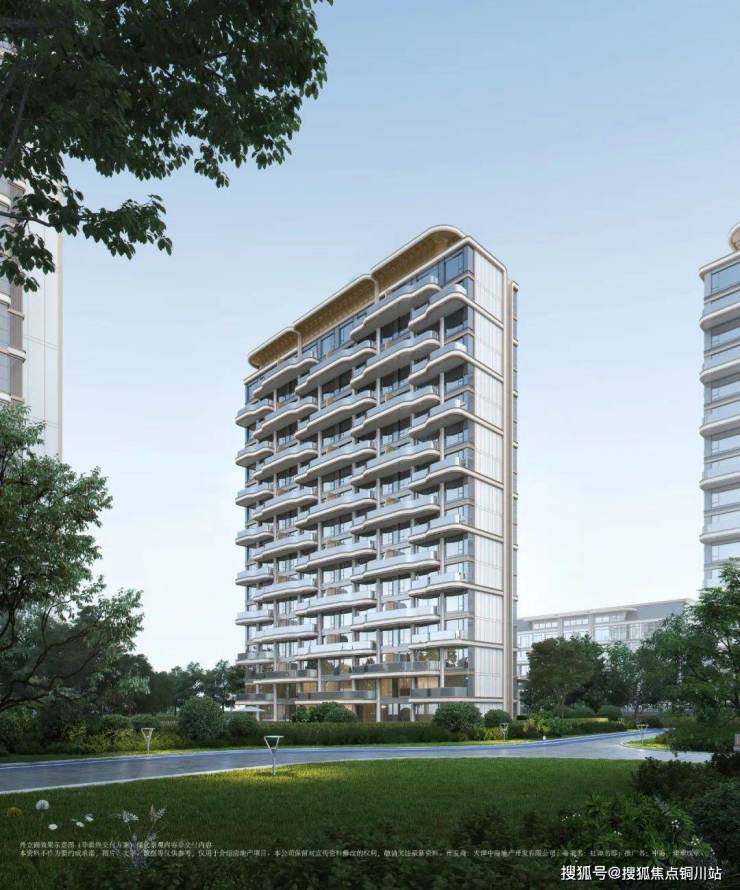 标准层全开敞阳台(全系首层架空层、高层产品二层无开敞阳台设计),非常有记忆点,打破棱角分明的方形常规设计,奇偶错层的开敞阳台为定制流线型造型,仿佛一片片云朵镶嵌在玻璃盒子上。