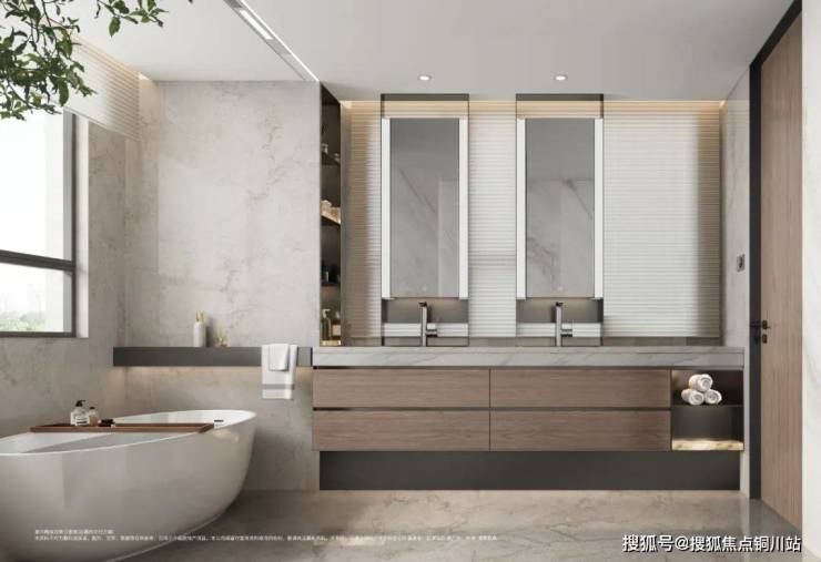 主卫双台盆设计,两位家庭成员可以同时洗漱,增进互动与交流。