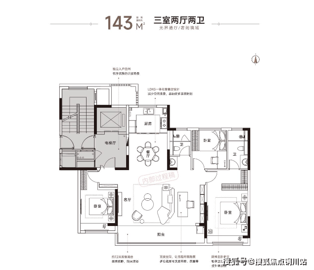 116㎡三室两厅两卫:经典飞机户型,南北通透。独立电梯厅,尊享私属归家礼序。LDKG一体化公区,视野开阔通透。7.2米阔景阳台,融汇实用与观景,演绎诗意生活。
