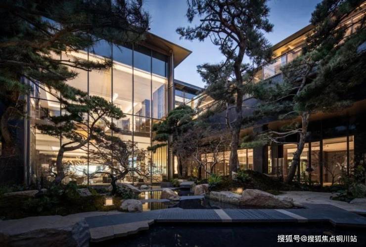 迎龙观月在叠墅设计中减少实墙,增加大面积玻璃面的使用,结合金属挂落、栏杆等纤细构件的应用,轻盈、通透、尊贵、典雅,营造出观景的极致舒适度。