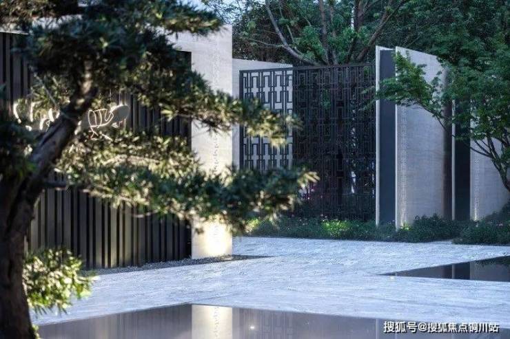 简洁大气的入口,引入新中式“屏风”样式。夕阳穿过格栅,一切似乎都恰到好处,方寸之间,光影变幻,把那抹禅意展现得淋漓尽致。