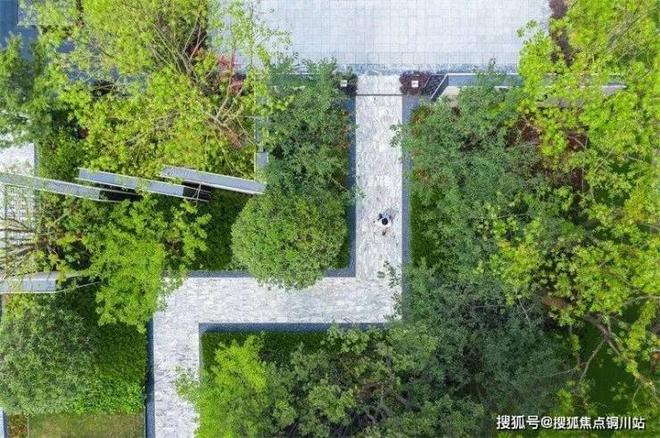 岁月静好——树林掩映间,特色金属格栅再次将空间围合起来,形成了一处林荫小径。转折的林间小路与内场庭院相互呼应。景观自游览转入人居。