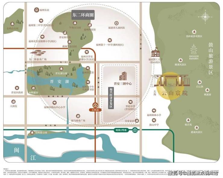 项目咫尺福州东二环繁盛之区,整个地块天然内嵌在福州主城区,直线距离地铁4号线后屿站1.8公里,晋安湖公园2.3公里,东二环泰禾广场2.8公里……