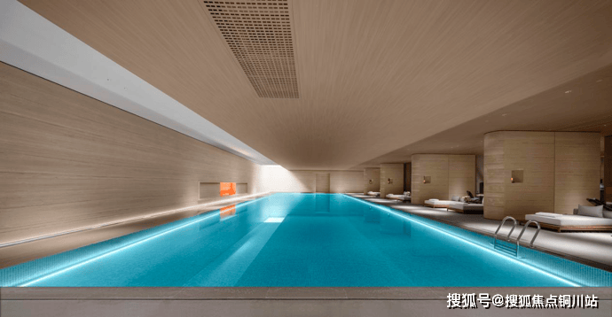 入园廊道天花板设计了星空顶,走道旁设有艺术装饰;往里走则是内庭水景区,让人仿佛踏进了喧闹城市中一方华丽又静谧的秘境,暖色灯光、林下休闲区,散发着慵懒的度假感。三进便是「艺术会所大堂」,请的是著名设计师吴滨。