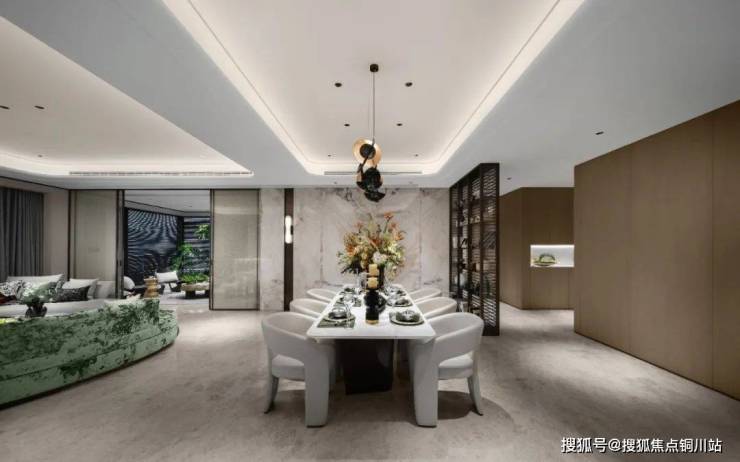 凤咏朝阳的北入口都很讲究,就像下一秒要拥人入怀的臂展——凤咏朝阳用浓烈的仪式感打造了两大主入口,用的都是星级酒店的做法,让我们不自觉就会调整入户前的情绪。重头戏更在大门之内,他们把江南四大名园的造园手法,运用到了凤咏朝阳这座「游园式大平层」的园区中——