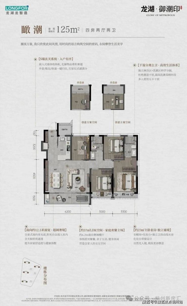 168㎡云端大平层:封面人物的“终极藏品”约16米南向面宽(四开间朝南),搭配“总统式”主卧套间,主卧套房配备270°转角飘窗,尺度比肩200㎡+产品;约15人宴客厅+多功能书房,次卫嵌入智能雾化玻璃、全屋配备龙湖智慧家居面板。