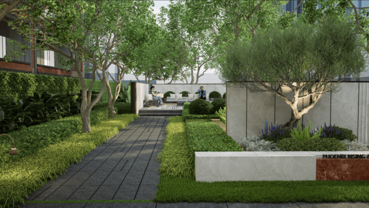 林屿花园(邻里花园)、翡色庭语(社区生活广场)如同控制情绪的遥控器