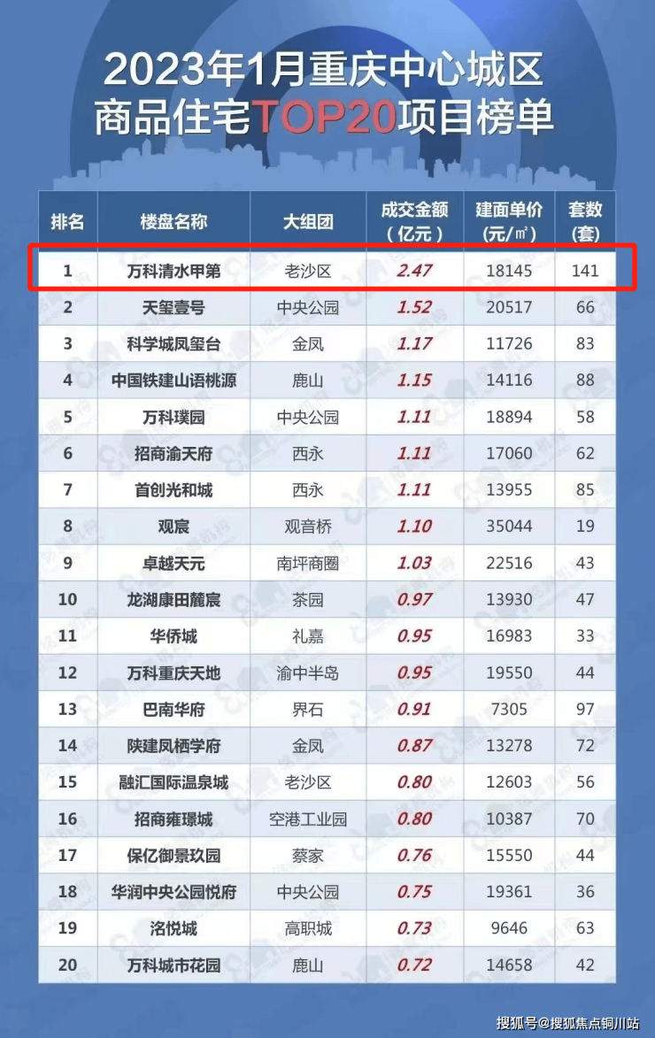在1月住宅卖的最好的TOP10项目里,万科清水甲第傲居TOP1,超越第二名近半身位!