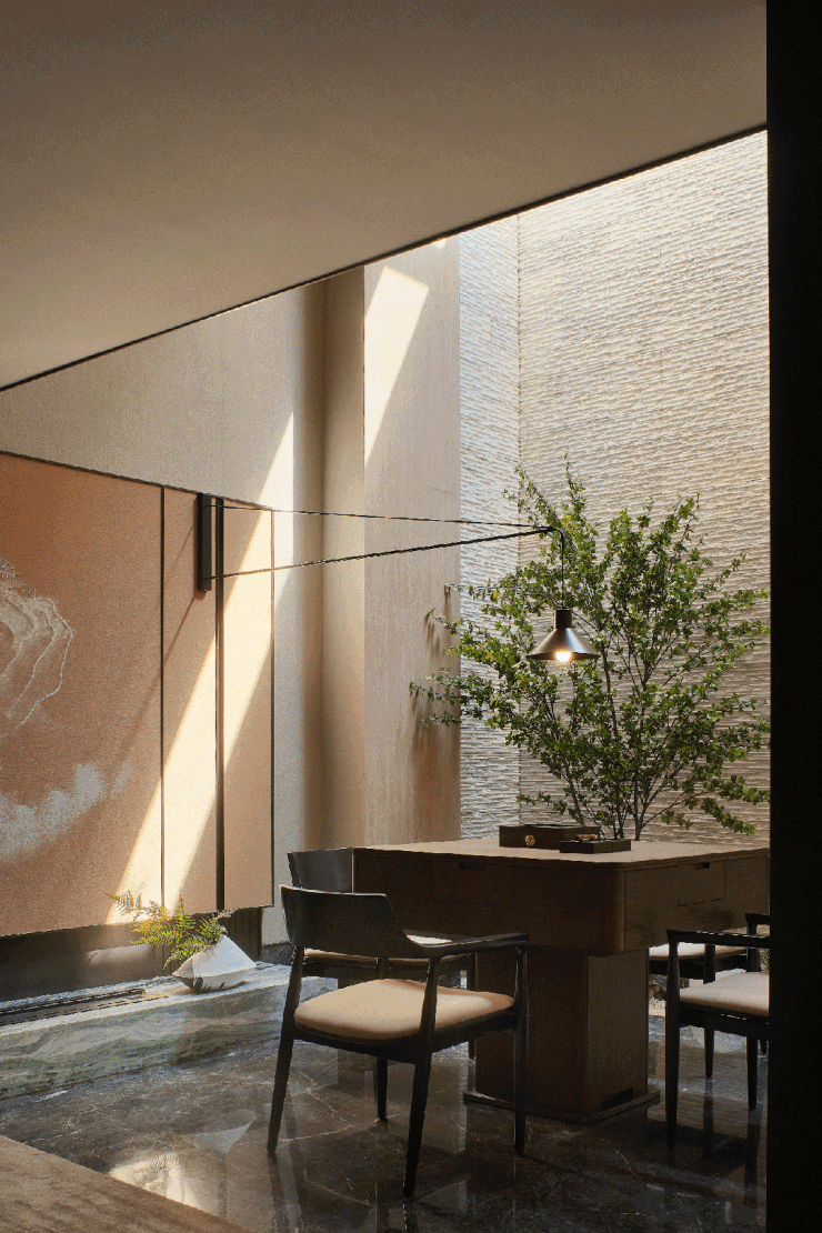 整个客厅拥有270度环幕采光,让业主坐在室内,望向窗外每一个视线,都能看见庭院景观,这种抬眼见绿、宅院相融的生活方式,是大平层、洋房、叠墅都无法取代。