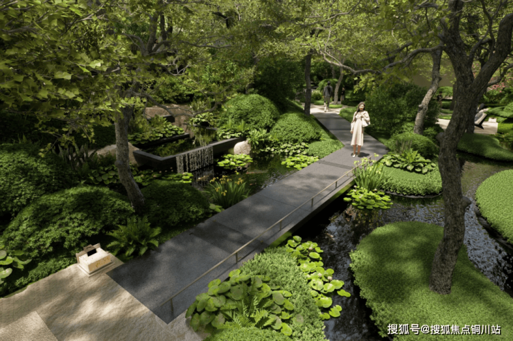 园林中还打造了艺术水院、立体森院和风雨连廊等,品质感满满。