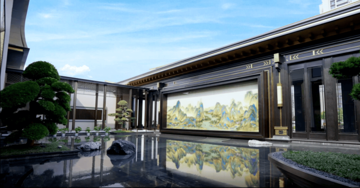一幅高约4米的《千里江山图》,为晋和府注入文化传承基因的同时,也将“平步青云、扶摇直上”美好寓意带给每一位业主。