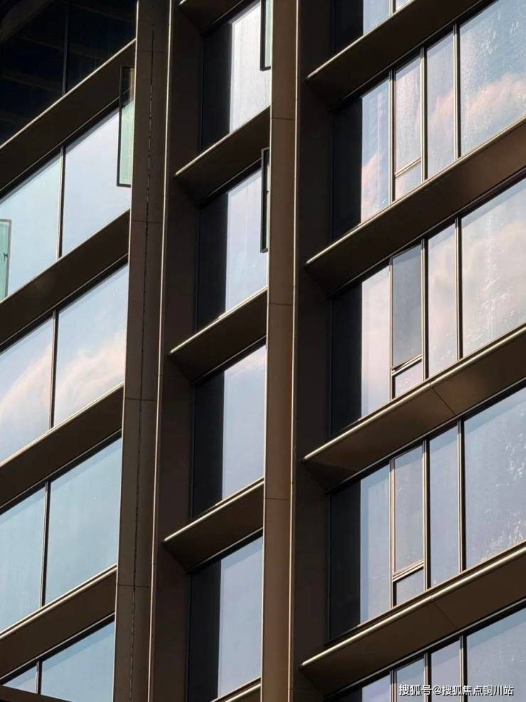 外立面采用香槟金铝板搭配270°弧形转角玻璃幕墙, 突破超高层住宅锐利直角的传统做法,且所有玻璃幕墙拐角处都做出弧度,打造少有的全景舱视野不仅赋予建筑以通透灵动的气质,更让每一道光线流畅穿梭,勾勒出无与伦比的流线美感。