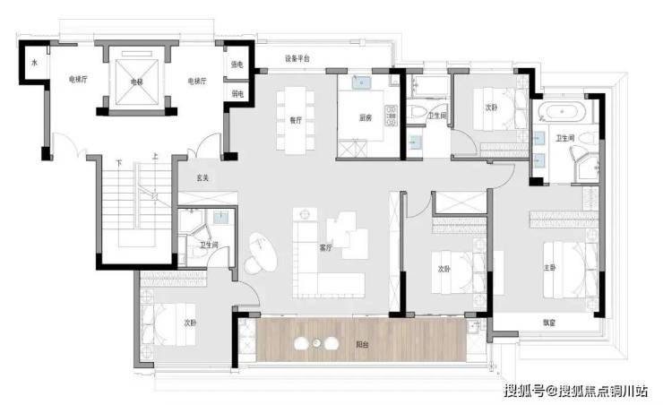 约16.6米的南向面宽、四开间朝南的格局,让阳光成为空间的主角;约3.3米的层高较普通住宅高出20-30厘米,消解了压抑感。约9.1米的巨幕阳台可化身茶歇区、亲子场,次卧升级为套房兼顾私密,这些设计背后,是让每个家庭成员都能在空间中找到归属感。