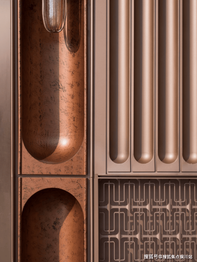 细眼观摩,门头材质尽显奢华,精选意大利进口木纹石作为主体材质,纵向肌理采用鎏金铝板