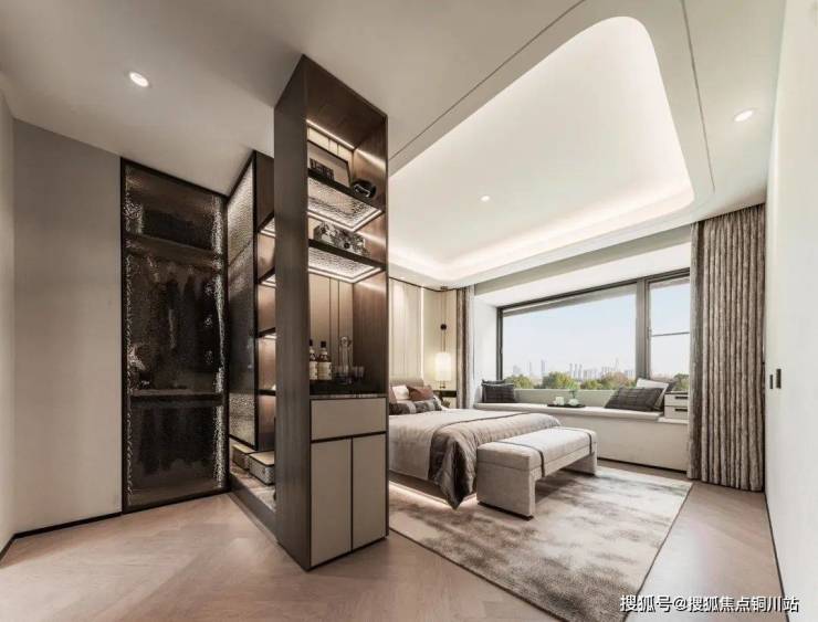 约27.26㎡酒店式总统套房,开间约3.8m,配备步入式衣帽间+星级酒店同款景观浴缸,更好诠释了私密卧室里的品质生活和豪宅必备的仪式感。