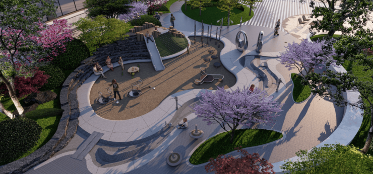 N个园林嵌套三重下沉庭院+双儿童乐园