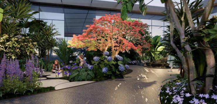 健身区和泳池顶部,专门设计了一个「四季花厅」,上下有垂直电梯相连。