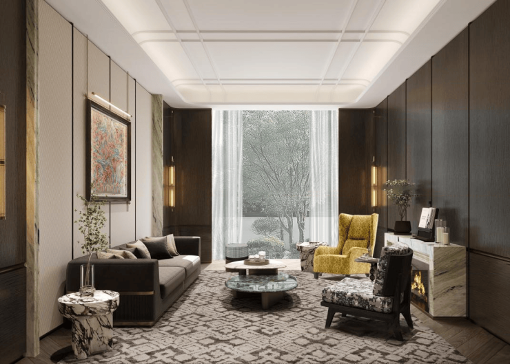 未来这里规划为休憩会客区,临窗沙发融合自然光效与景观视野,既可商务会客,又可静思独处。