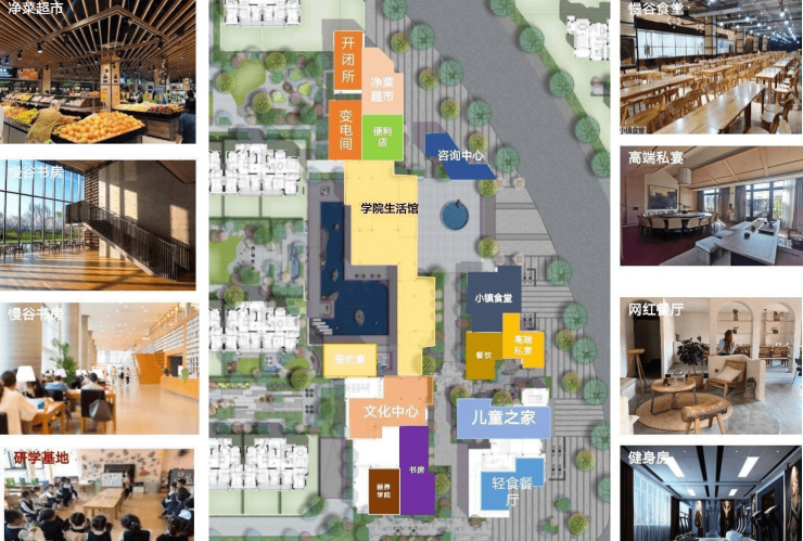 [Commercial supporting facilities]: About 20000 Internet Children's Square. The 3700 square theme commercial block, including farmers' market, beauty salon, town canteen, cafe, catering, supermarket, gym, provides convenient living facilities for the owners