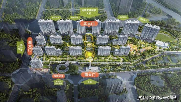北门大堂乘坐直梯可直达下沉庭院/地面层,或乘坐扶梯到下沉庭院,再经步梯/扶梯至地面,行至社区园林归家。西门可由步梯/直梯至地面后,漫游园林归家。