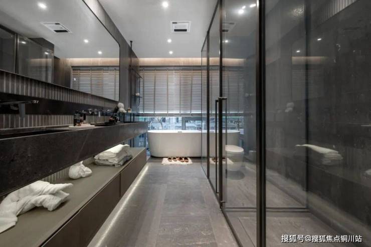 我们在度假酒店客房才能看到的大浴缸、双台盆等“五件套”,主卧可轻松容纳。