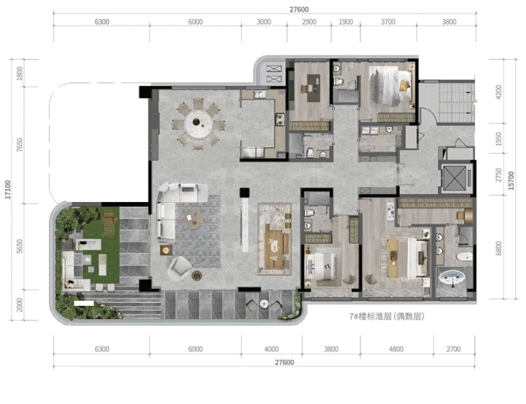 在翡翠森林,花园进深最大可达约7.65米,大进深空中花园,双层约6.2米挑空、270°广角视野,户户享约36-50㎡“悬浮式”空中庭院,尺度比同类产品更大,通透性、采光效果以及视野更好。