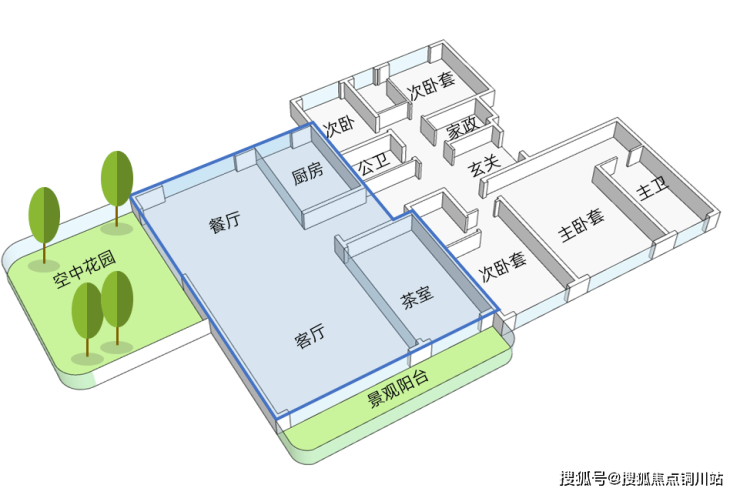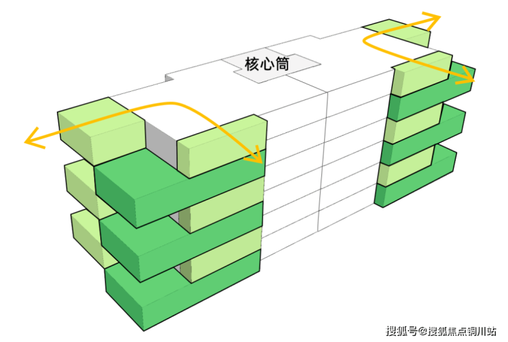 首先重点考虑“空中庭院”的布置问题: