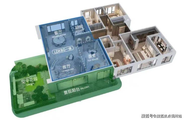 公区带来生活进化的场景革命:LDKBG一体化设计,整个空间格局彻底打开,构建无界家庭生活聚场空间,室内室外交融互动,营造更丰富的场景体验,演绎全新的家庭生活方式。