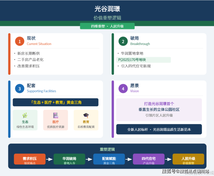 在大关山板块土地资源日益稀缺、新房供应持续不足的背景下,华润置地以 "润系" 标准落子关山核心,打造光谷首个POD立体公园住区——光谷润璟。这个容积率仅 2.15、得房率超100%的四代住宅项目,不仅填上了区域内高品质刚需改善产品的空白,更以"公园+商业+社区+社群"一体化的开发模式,重新定义了光谷核心区的居住标准。