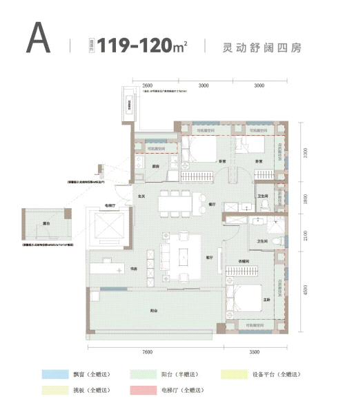 建面约120m²舒阔四房,随心拓展的一体化公区