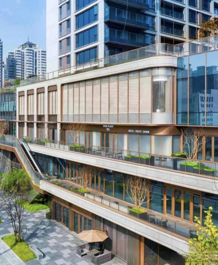 商业立面,以及住宅基座,古翠设计师采用了珍珠蓝石材,这种石材色差小、花色均匀稳定,典雅清新。动线规划上,实现“双首层”设计,室外扶梯如琴弦般顺畅。