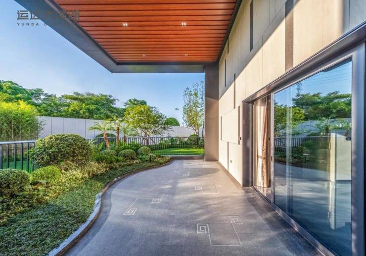 其中,木纹铝异型折板吊顶,墙面仿石材石英砖和花园景观运达在交付之前全部完成,未来还有智能灌溉系统悉心守护,花园中的植物生长无忧。