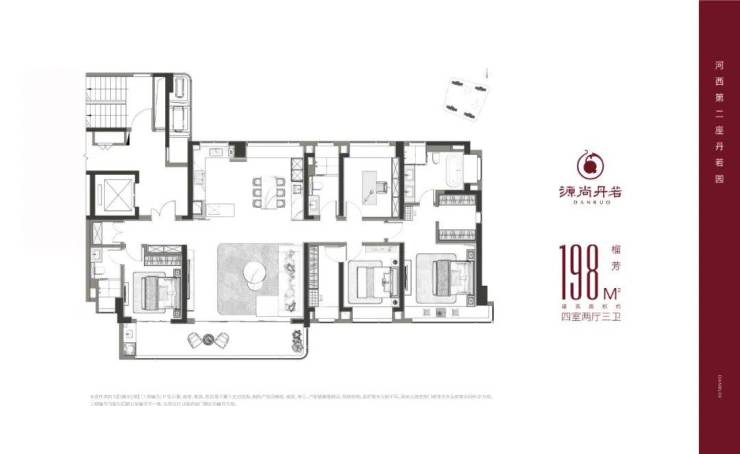 建面约198㎡ 4房2厅3卫户型↓↓
