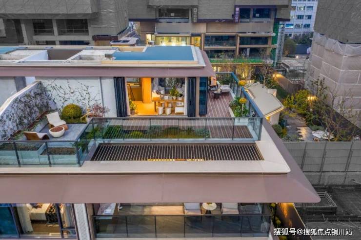 高品质住宅的空中景观平台堪称一大特色。景观平台向外挑出3.6米,采用奇偶层错层设计,使得每一户均拥有宽敞的270°空中景观平台。可被打造为私家花园、休息区或社交场所,为住户提供了与自然深度亲近的空间。平台栏板选用通透的玻璃材质,确保了视野的开阔度,让住户能够尽情领略城市风光,同时在视觉层面减轻了建筑的体量感。其边缘进行了圆角处理,弱化了建筑的硬朗特质,增添了一份柔和与亲和之感,营造出适宜居住的环境。错落有致的空中景观平台,宛如一个垂直的生态系统,于城市的高空之中营造出一处微型的绿色空间。
