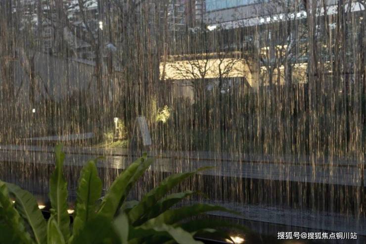 柔和的灯光,将每一级悄然垂落的素色水幕,都镀成了流淌的暖玉,光影随着水纹微微荡漾。