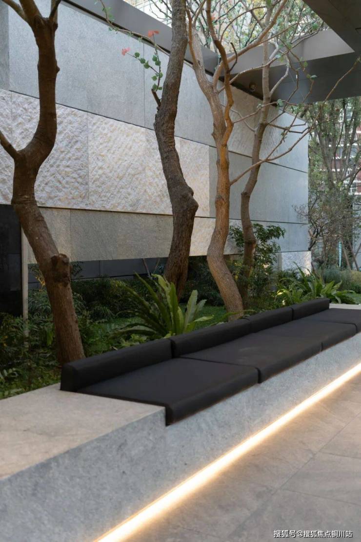 绿植以丰富的层次向深处晕染,脚下铺装的质感随步轻柔更迭。景墙之上,一缕细水潺潺滑落,声声清浅,如时间轻轻滴答。闲坐其间,一方心域悄然舒展,身心在此刻,与流水同静,与光阴同驻。